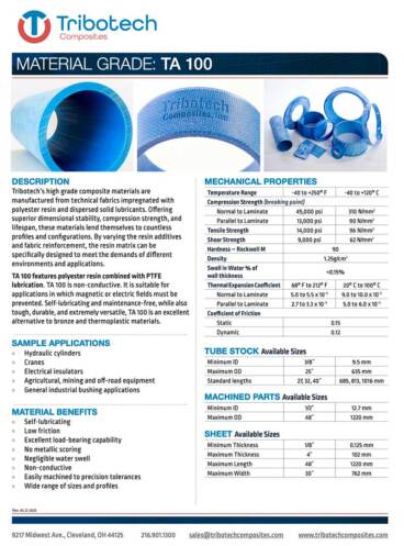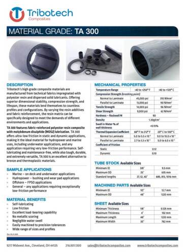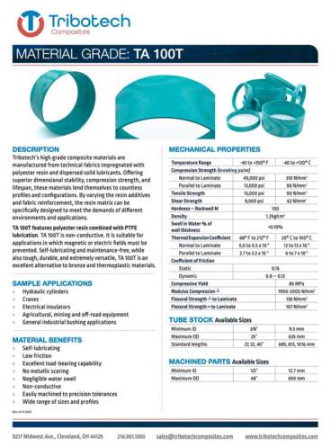 Tribotech composite bearings and tubes are available in different grades to meet the demands of any application. Our standard grades include: